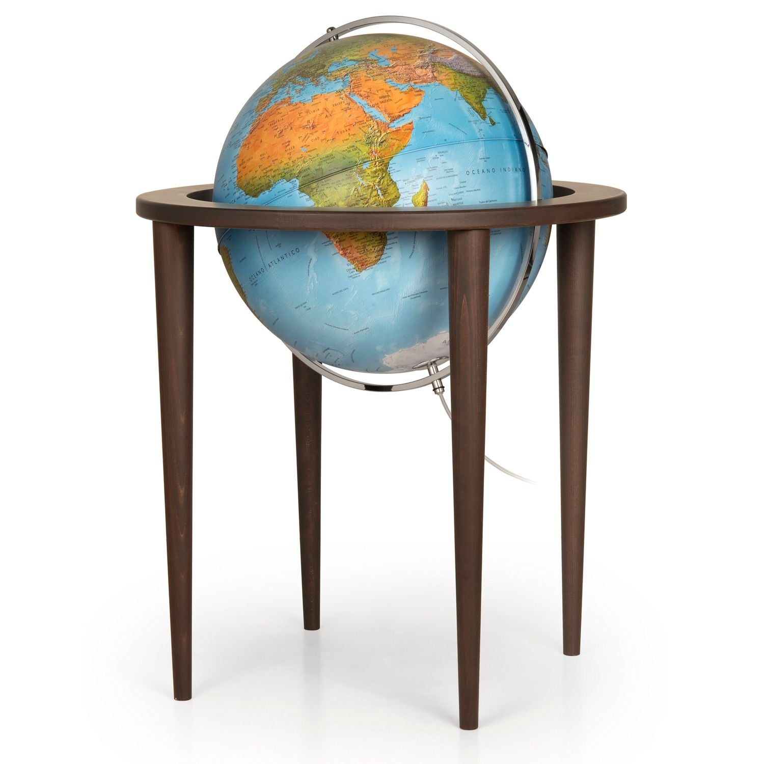 Mit diesem Standglobus hat Räthgloben einen edlen Globus geschaffen, der sich gut in öffentlichen, Geschäfts- oder anderen repräsentativen Räumen macht. Dieser Stand-Globus überzeugt durch sein stilvolles Design. Das walnussfarbene Gestell und ist aus hochwertigem Hartholz gefertigt. Die Kugel ist nicht nur um ihre eigene Achse drehbar, sondern im vergoldeten Metallmeridian auch schwenkbar, sodass auch die Südhalbkugel bequem zu betrachten ist.